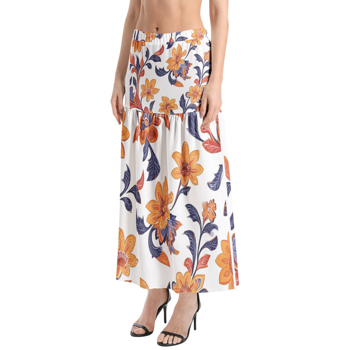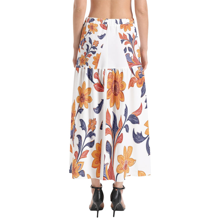 Elegant Floral Pattern- Elastic Waist Ruffle Slit Hem Skirt