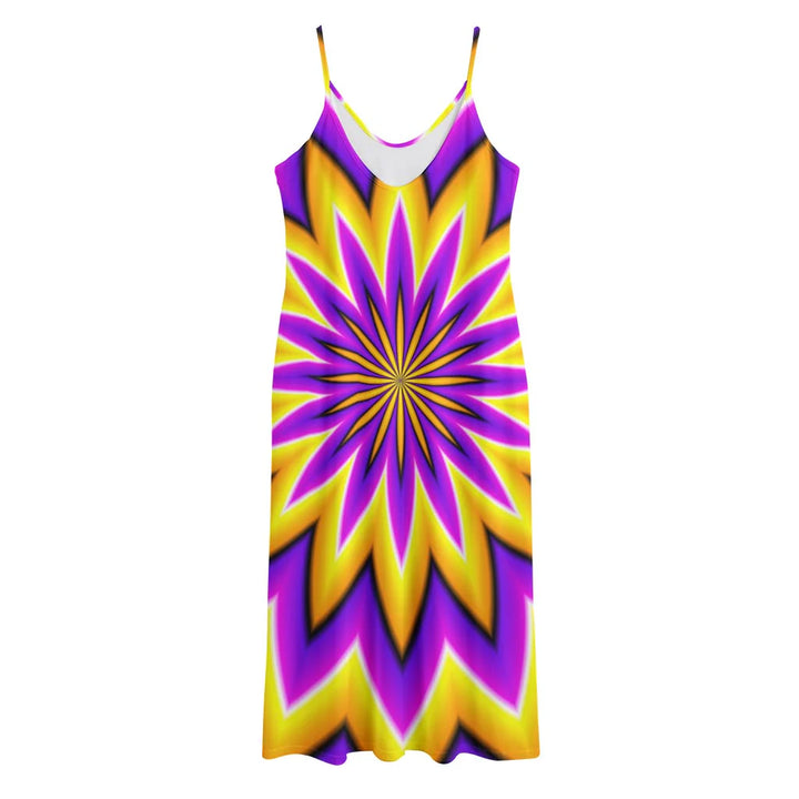 Pickloop Yellow Flower Moving Optical Illusion Jersey Midi Cami Dress